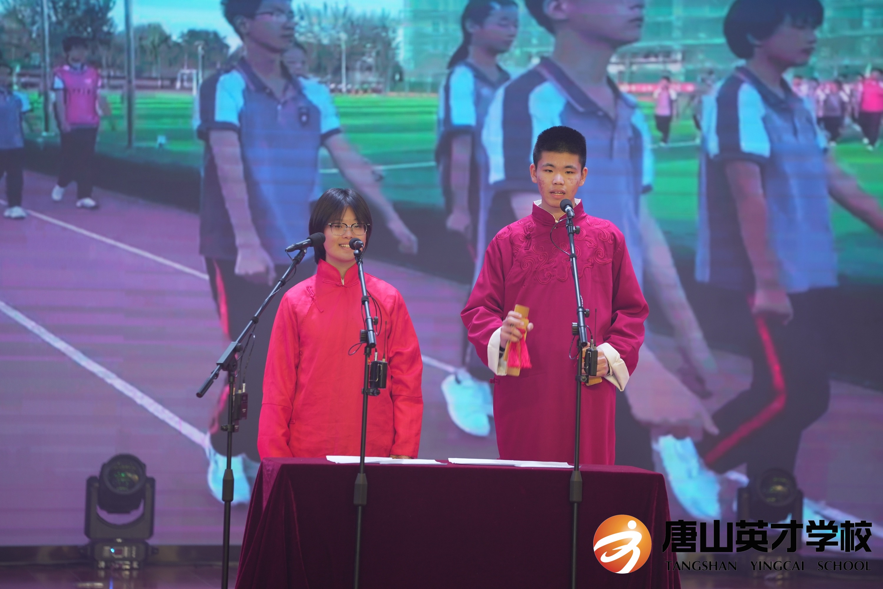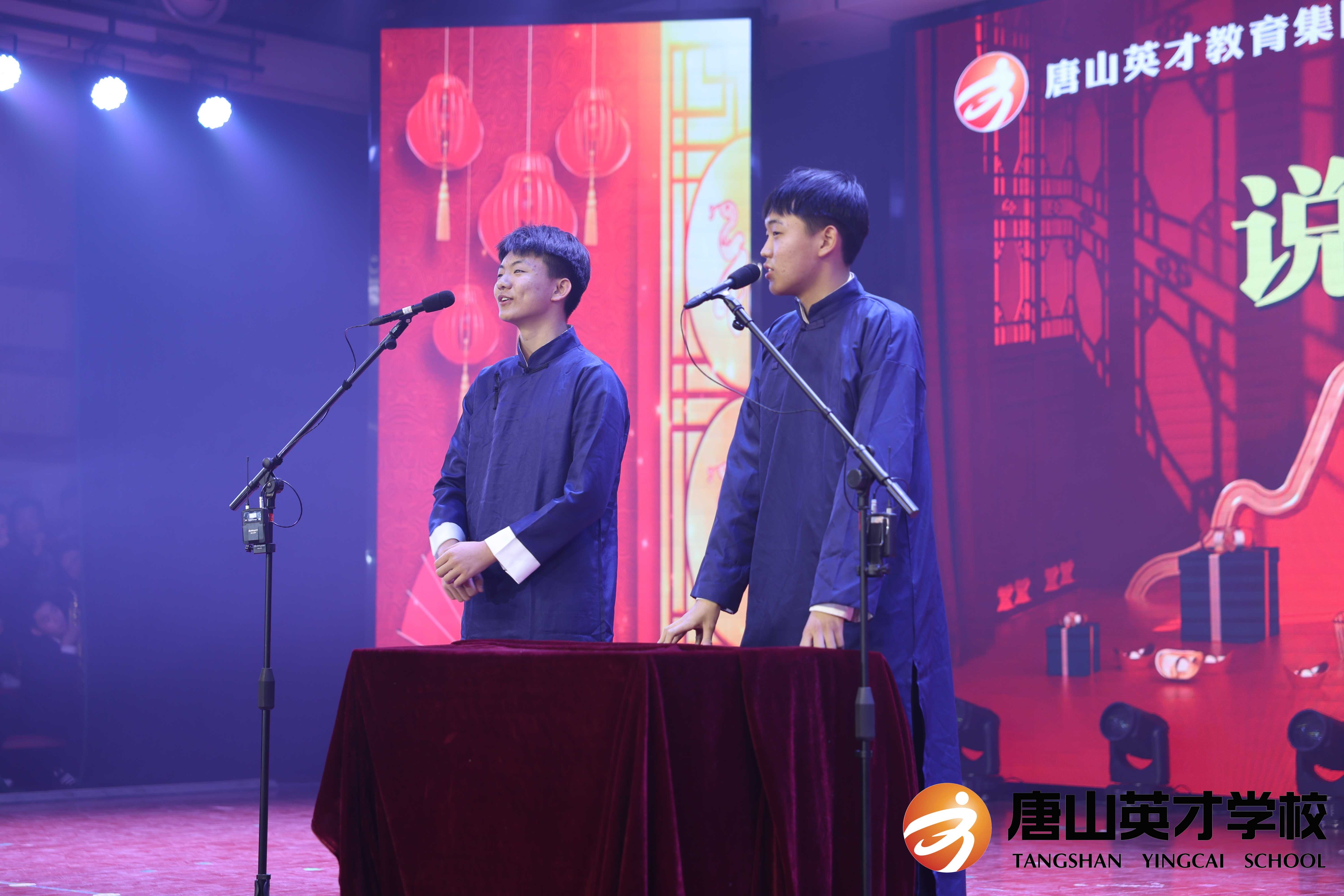 唐山英才学校,向来是卧虎藏龙之地,同学们个个身怀绝技。幽默诙谐的相声表演伴随着观众热烈的掌声开幕,两位同学“说、学、逗、唱”样样精通,字字句句令人捧腹,短短五分钟展现了相声的无尽魅力,带大家领略了一场妙趣横生的语言盛宴。