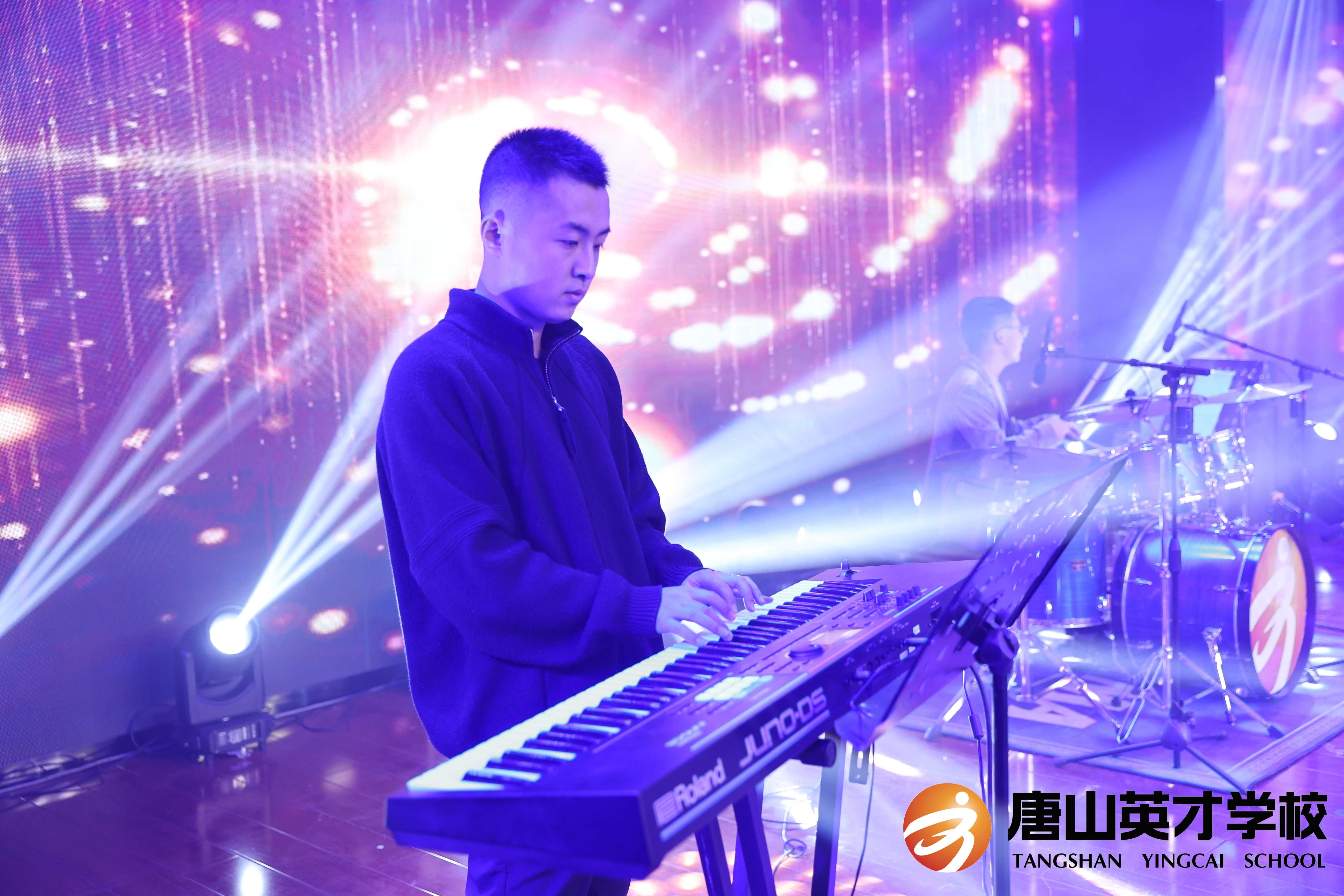 一元复始,仿若新春的第一缕曙光,万象更新,恰似和煦的春风轻拂大地。英才乐队带着新乐章再次登台电吉他的狂野、架子鼓的激昂、键盘的灵动,伴随着具有青春活力的舞蹈,清新悠扬的萨克斯,动人心弦的人声演唱,瞬间点燃全场激情,台下欢呼声、掌声交织一片。